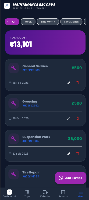 Digital maintenance logs help track service cycles and parts replacement, shifting your strategy from reactive repairs to predictive upkeep. This prevents major losses and keeps your fleet road-ready. डिजिटल मेंटेनेंस लॉग सर्विस साइकिल और पार्ट्स बदलने पर नज़र रखने में मदद करते हैं। इससे आप अचानक होने वाले खर्चों से बचते हैं और आपकी गाड़ियाँ हमेशा सड़क पर रहने के लिए तैयार रहती हैं।