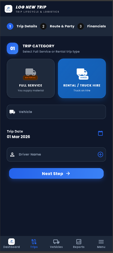 Calculate profit for any trip type: Fixed Hire, Pay by Tonnage, or Full-Service (Material + Transport). Record en-route expenses, fuel/cash advances, and detailed payment breakdowns from parties. हर तरह की ट्रिप का हिसाब करें: फिक्स्ड किराया, टन के हिसाब से, या फुल-सर्विस (मटेरियल के साथ)। रास्ते के खर्चे, डीजल और कैश एडवांस, और पार्टियों से मिलने वाले पेमेंट का पूरा रिकॉर्ड रखें।