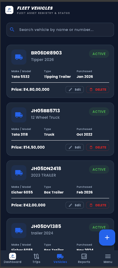 The definitive analytics suite for modern fleet owners. Track every expense, monitor unit-wise margins, and automate your maintenance lifecycle with industrial precision. आधुनिक बेड़े मालिकों के लिए निश्चित विश्लेषिकी सुइट। प्रत्येक व्यय को ट्रैक करें, इकाई-वार मार्जिन की निगरानी करें, और औद्योगिक सटीकता के साथ अपने रखरखाव जीवनचक्र को स्वचालित करें।